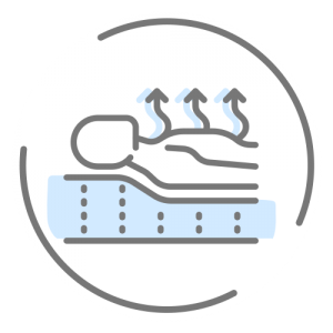 Dieses Doppeltuch bildet durch seinen hochwertigen und aufwendigen Aufbau mit einer reinen Baumwolloberfläche, einem flauschigen PES-Volumen-Füllfaden und einer Stoffrückenkonstruktion aus reißfesten PES-Garnen (Charmeuse) das natürliche und wirksame Klimasystem und die langjährig leistungsfähige Hygieneausstattung der Matratze.
